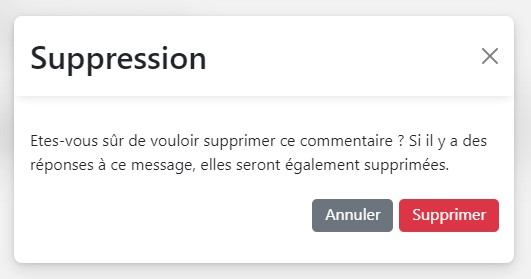 Dans le cas ou il souhaite supprimer le commentaire, une validation sera demandée, et l'ensemble des reponses seront affectées.