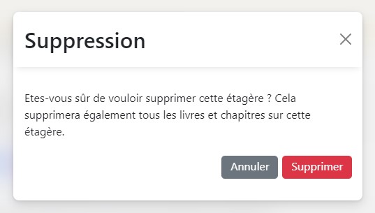 Dans le cas ou il souhaite supprimer la section, une validation sera demandée, et l'ensemble des sous-sections seront affectées.