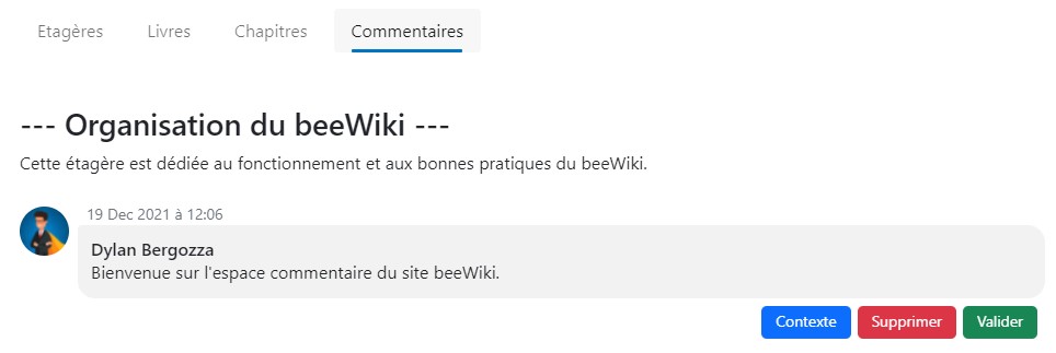 Sur l'onglet "Commentaires", sous chaque commentaire en attente de validation, l'utilisateur aura le choix de :