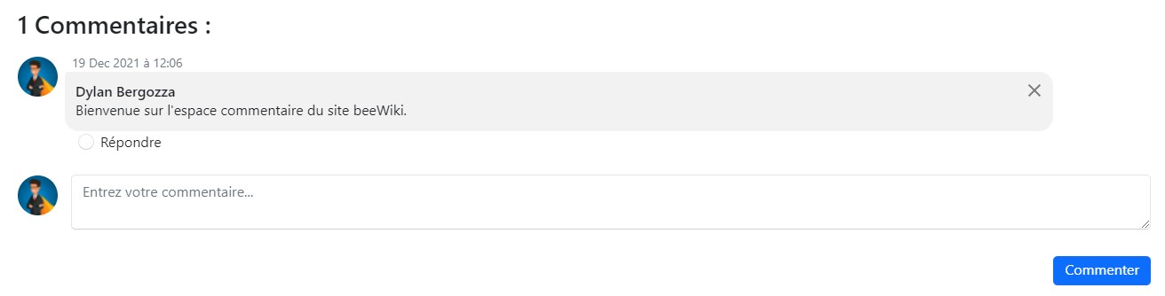 Sous chaque section publiée, à l'exception de la page d'accueil, vous trouverez un espace commentaire.