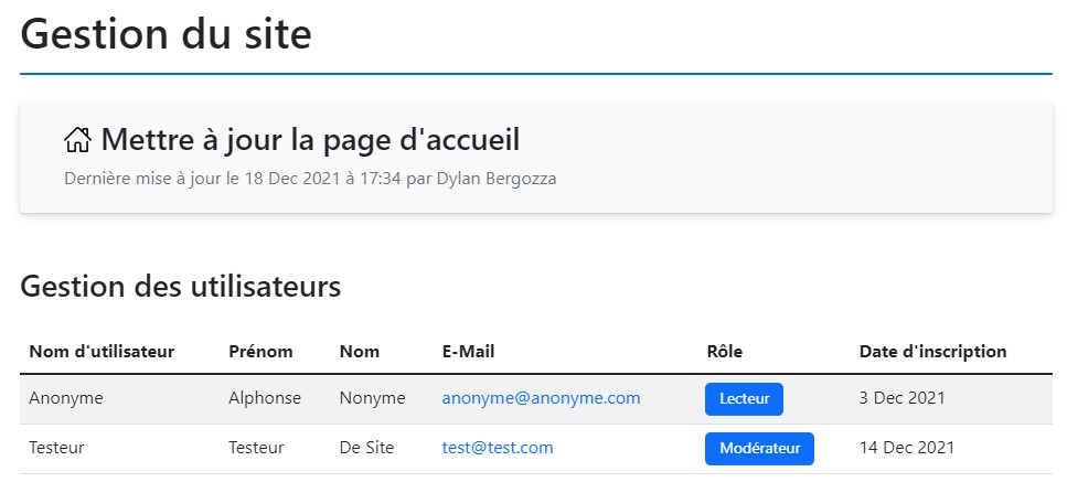 Ils peuvent également mettre à jour la page d'accueil et définir les différents rôles des utilisateurs :