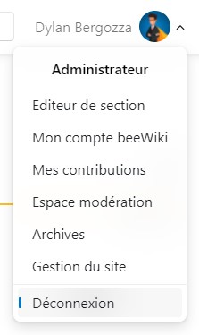 Pour vous déconnecter, cliquez sur votre profil en haut à droite pour ouvrir le menu, et cliquez ensuite sur "Déconnexion".